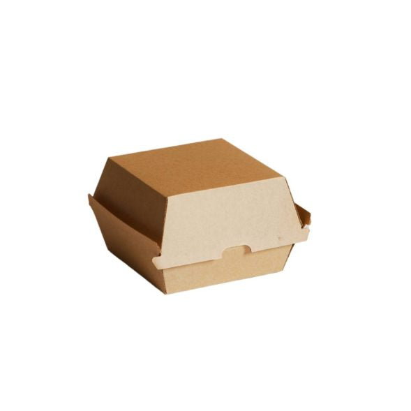 The Enviro Burger Box in Brown Kraft offers a sturdy and eco-friendly packaging solution measuring 105mm x 102mm x 42mm, ideal for securely containing burgers. Supplied in cartons of 300 pieces, this pack features durable kraft material that supports sustainability while maintaining product integrity during transport and service. Available in convenient packs of 50, it suits high-volume food service environments seeking reliable, environmentally conscious packaging.