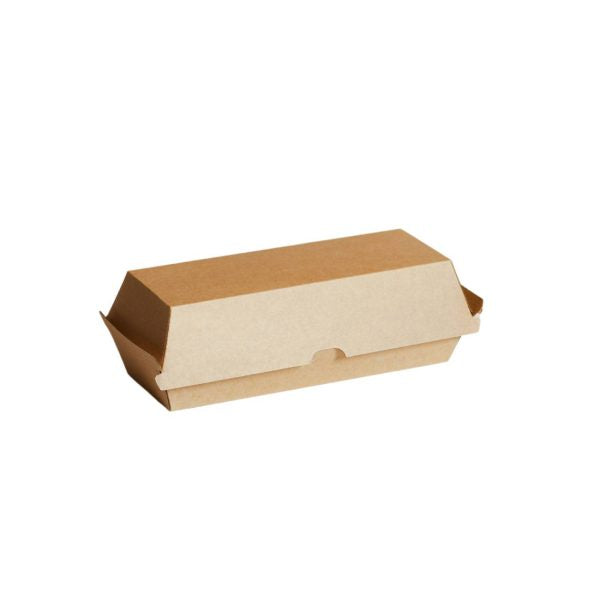 The Enviro Hot Dog Box in Brown Kraft offers a durable and eco-friendly solution for serving hot dogs. Measuring 208mm x 70mm x 39mm, these boxes provide ample space to keep your food secure and presentable. Supplied in a pack of 50 with 200 boxes per carton, they are ideal for high-volume food service settings. Crafted from brown kraft material, they combine sustainability with practicality, helping businesses meet environmental goals without compromising on quality or convenience.