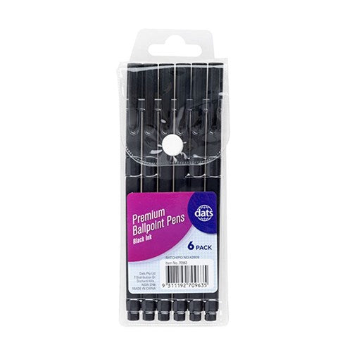 This six-pack of premium ballpoint pens with caps offers smooth, consistent ink flow for precise writing. Designed for professionals, each pen features a secure cap to prevent drying and a comfortable grip for extended use. Ideal for office, school, or everyday tasks requiring reliability and clarity.